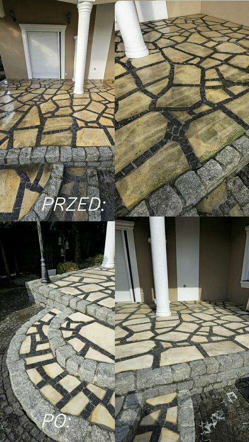 Witam, oferujemy czyszczenie kostki brukowej tarasów płotów chodników oraz podjazdów, oferujemy również czyszczenie elewacji.Pracujemy na profesjonalnym sprzęcie spalinowym wysokociśnieniowym oraz talerzu T-racer